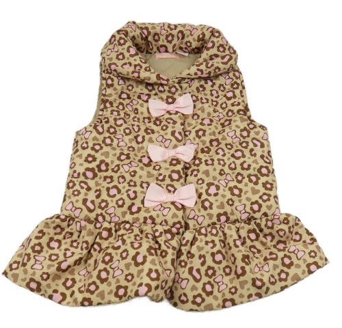 • Béžovo-ružovo-hnedá šušťáková zateplená vesta s leopardím vzorom a mašľami