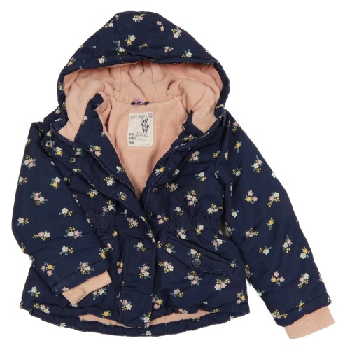 Tmavomodrá kvetovaná šušťáková zimná parka s kapucňou Dopodopo