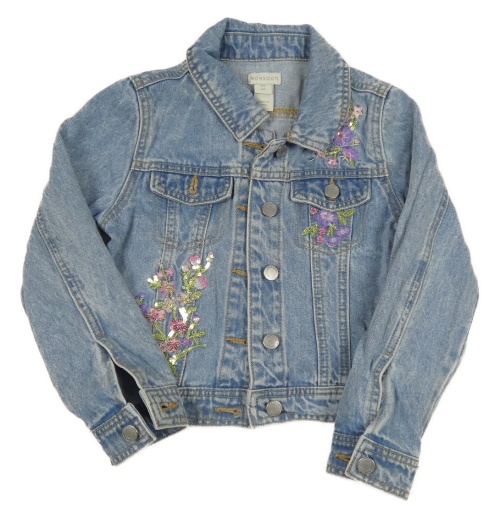 Modrá rifľová bunda s kytičkami z flitrů Monsoon