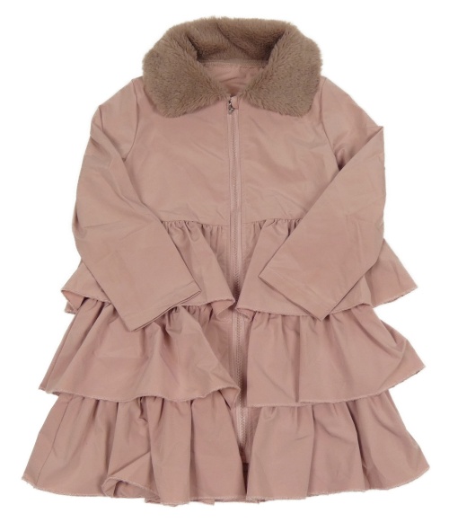 • Staroružový šušťákový jarný kabát s volánikmi a kožušinovým golierikom SHEIN