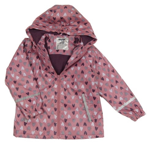 Staroružová nepromokavá zateplená bunda so srdiečkami a kapucňou Lupilu