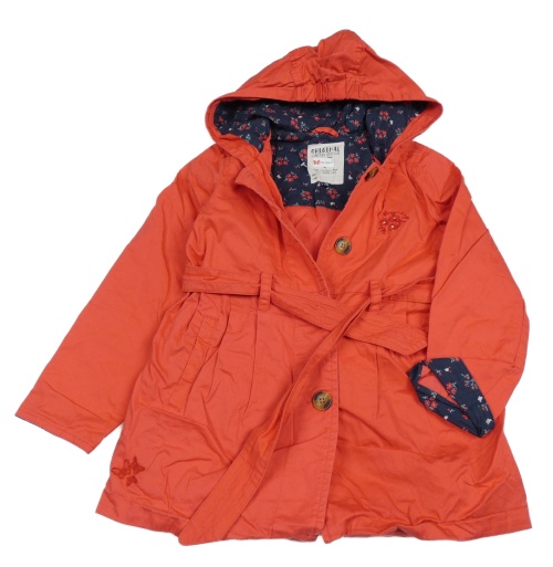 Červený plátenný jarný kabát s opaskom a kapucňou