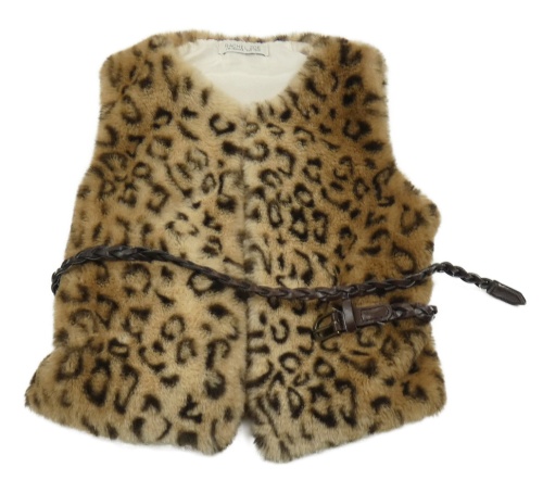 Béžovo-hnedá vzorovaná kožušinová vesta s opaskom Rachel Zoe