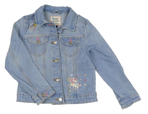 Svetlomodrá rifľová bunda s jednorožcom