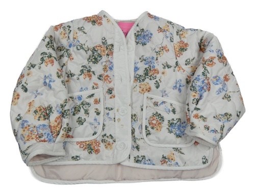 Smetanovo-farebná kvetovaná šušťáková lehce zateplená bunda