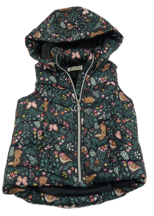 Čierna kvetovaná šušťáková zateplená vesta s králikmi a kapucňou H&M