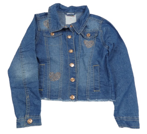 Modrá rifľová crop bunda so srdíčky z kamínků a golierikom Lemon Kiss