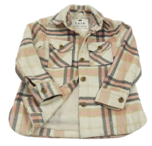 Smetanovo-ružovo-čierna kockovaná košeľová vlnená podšitá bunda F&F
