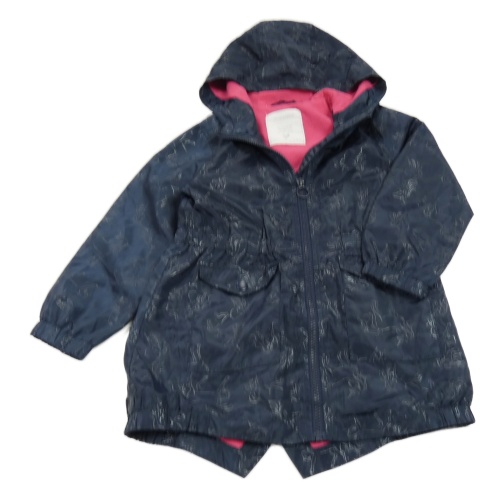 Tmavomodrá šušťáková jarná parka s jednorožcami a kapucňou Matalan