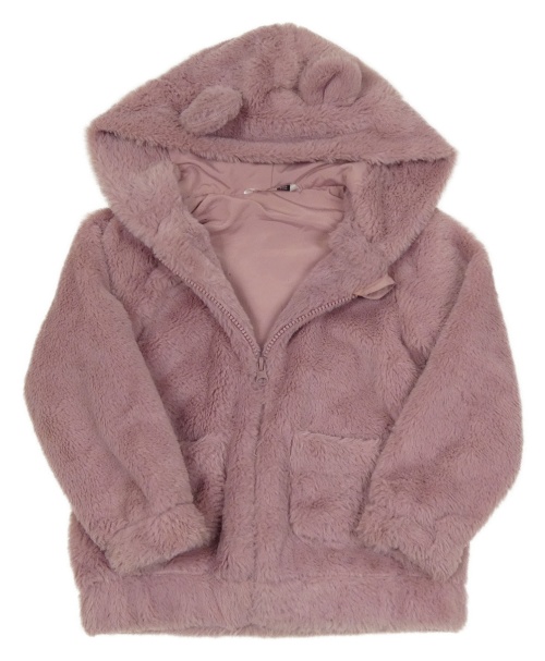 Staroružová kožušinová podšitá bunda s kapucňou s uškami PEP&CO