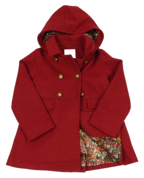 Červený vlnený podšitý kabát s gombíky a golierikom a kapucňou Next