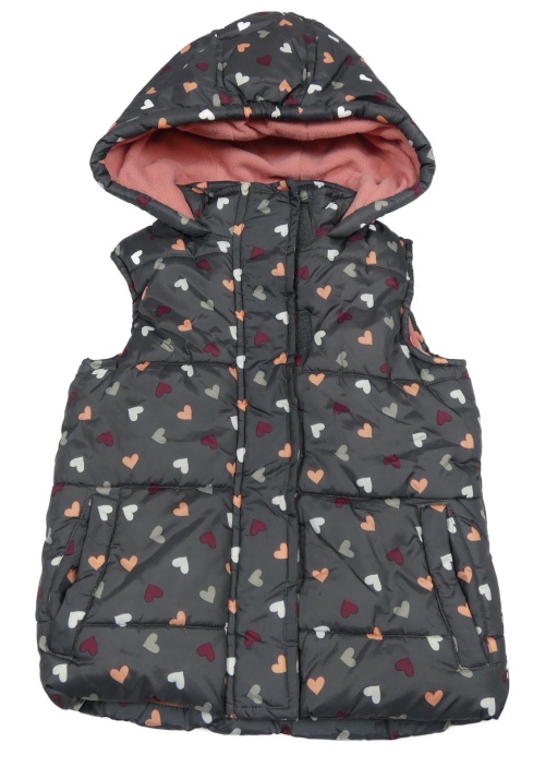 Tmavosivá šušťáková zateplená vesta so srdiečkami a kapucňou Topolino