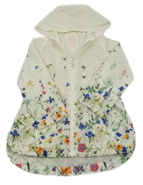 Bielo-farebná kvetovaná šušťáková jarná bunda s kapucňou Tu