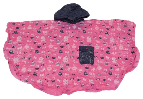 Ružovo-tmavomodré pláštěnkové pončo s príšerkami a kapucňou