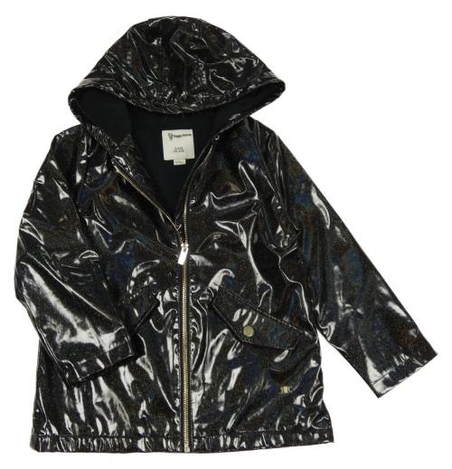 Čierna trblietavá lesklá lehce zateplená bunda s kapucňou River Island