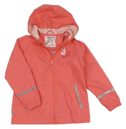 Korálová nepromokavá bunda s jednorožcom a kapucňou Lupilu