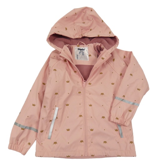 Ružová bodkovaná á nepromokavá lehce zateplená bunda s korunkami a kapucňou Lupilu