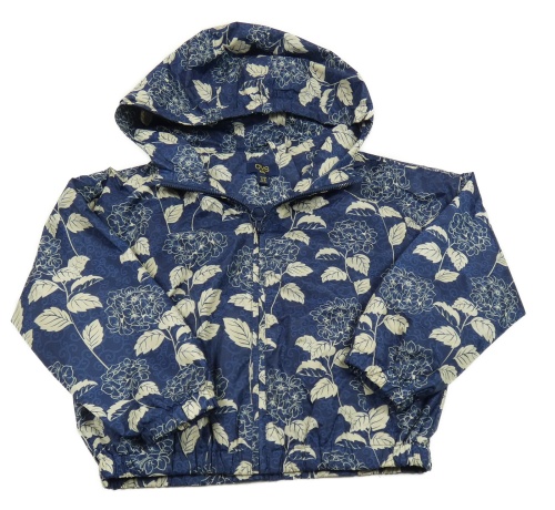Tmavomodrá vzorovaná šušťáková jarná bunda s listami a kapucňou OVS