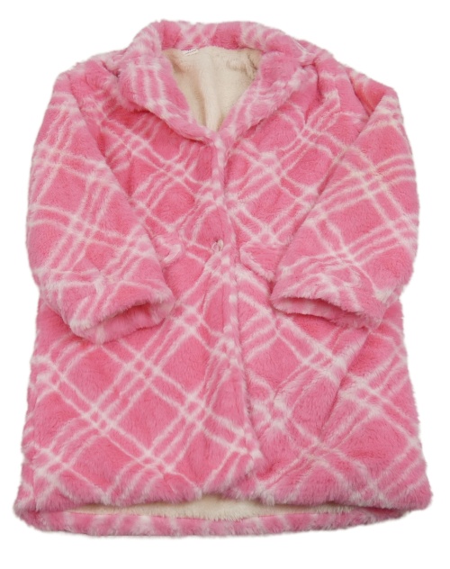 Ružovo-biely kockovaný kožušinový zateplený kabát Shein