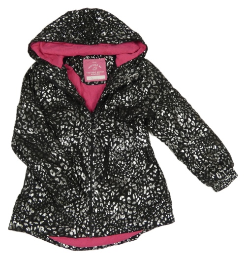 Čierno-strieborná vzorovaná šušťáková jesenná parka s kapucňou George