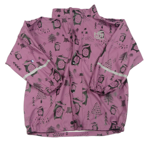 Starorůžovofialová nepromokavá bunda s jezevci a stromčekmi