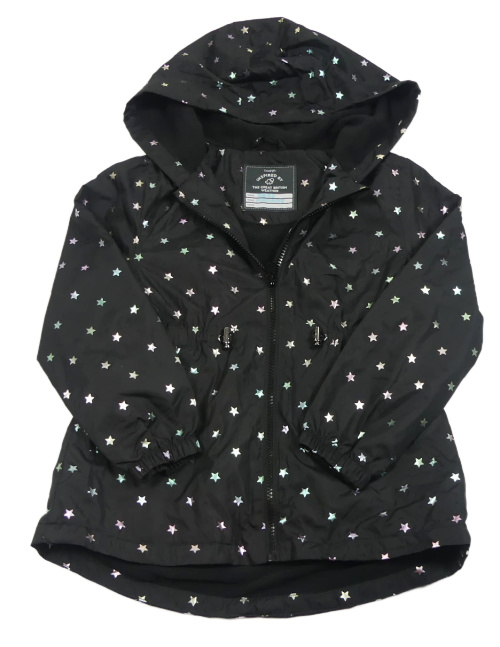 Čierna šušťáková lehce zateplená parka s hviezdami a kapucňou George