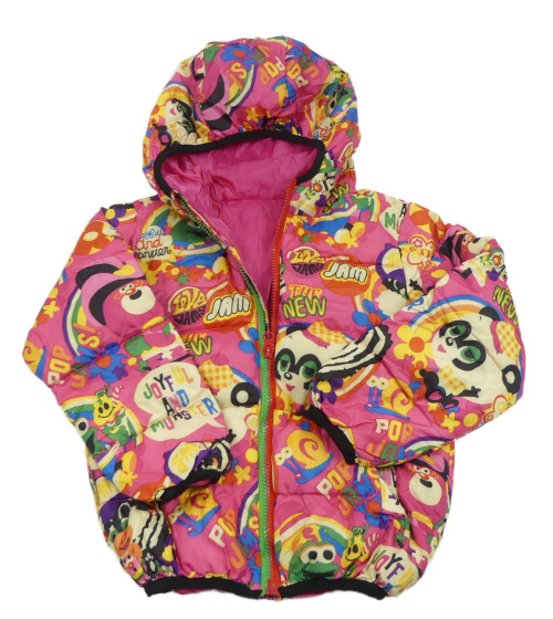 Ružovo-farebná šušťáková zimná bunda s obrázkami a kapucňou