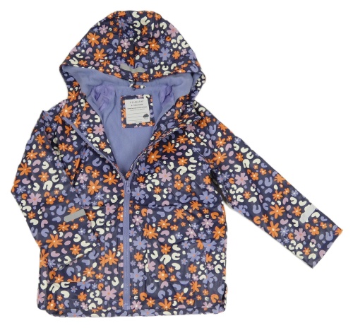 Tmavomodrá nepomokavá jesenná bunda s kvietkami