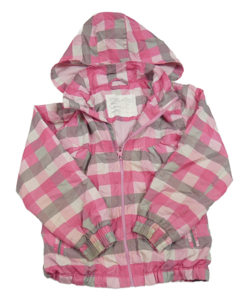 Ružovo-sivá kockovaná jesenná bunda s kapucňou