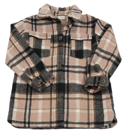 Starorůžovo-čierno-biela kockovaná vlnená podšitá košeľová bunda F&F