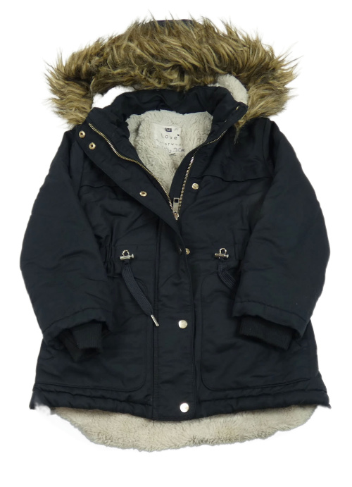 Tmavomodrá šušťáková zimná parka s kapucňou s kožešinou F&F