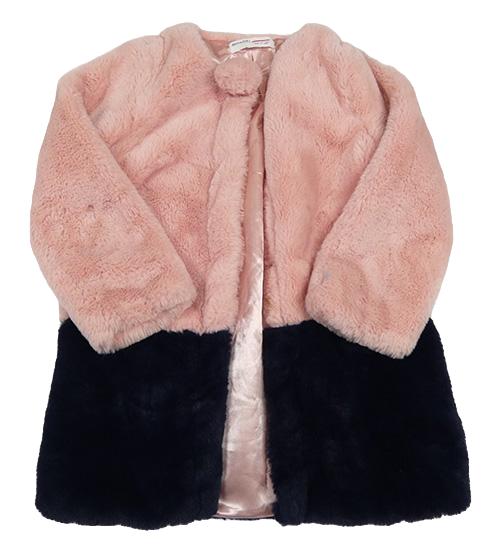 Ružovo-tmavomodrý kožušinový podšitý kabát s brmbolcom Minoti