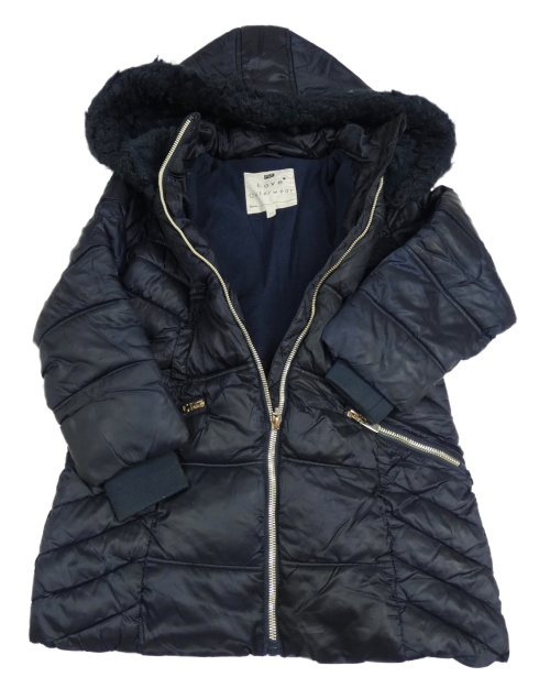 Tmavomodrý prešívaný šušťákový zimný kabát s kapucňou s kožešinou F&F