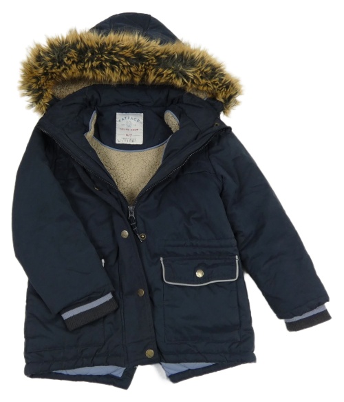 Tmavomodrá šušťáková zimná bunda s kapucňou s kožešinou Fat Face