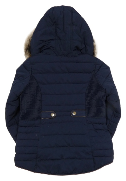 Tmavomodrá šušťáková zimná bunda s kapucňou s kožešinou Joules