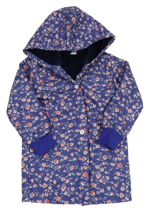 Fialový kvetovaný plátenný lehce zateplený kabát s kapucňou shein