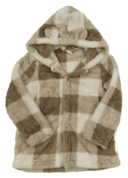 Hnedo-biela kockovaná chlpatá prepínaci mikina s kapucňou Shein
