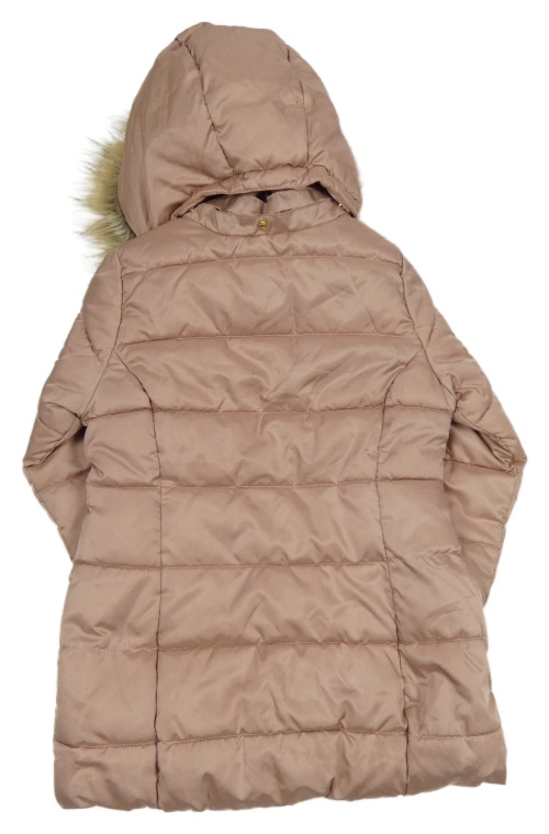Svetloružová šušťáková prešívaná zimná bunda s kapucňou s kožešinou H&M