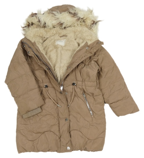Svetlohnedá prešívaná šušťáková zimná parka s kapucňou s kožešinou Next