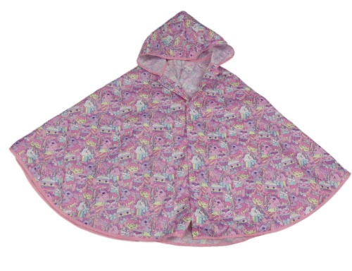 Ružové vzorované šušťákové pončo s jednorožcami a kapucňou
