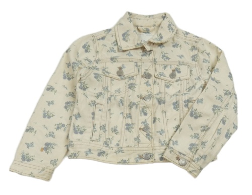 Smotanová rifľová crop bunda s kvietkami Next
