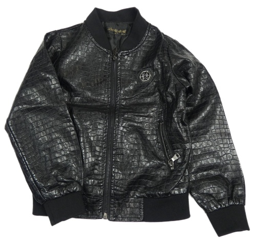 Černý vzorovaný koženkový jarní crop bomber s nášivkou