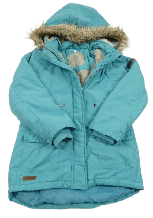 Svetlotyrkysová ý šušťákový zimný kabát s kapucňou s kožešinou Topolino