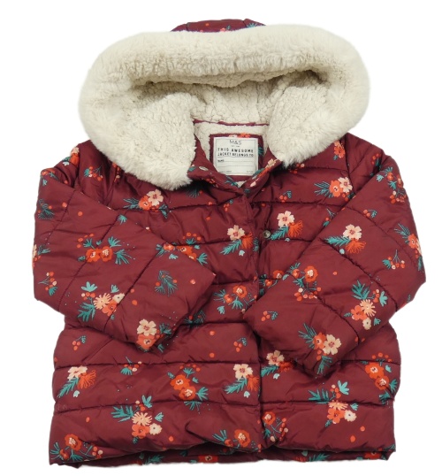 Vínová kvetinová šušťáková zimná bunda s kapucňou M&S