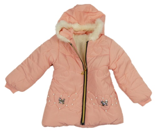 Ružová šušťáková zimná bunda s perlami a kapucňou s kožešinou