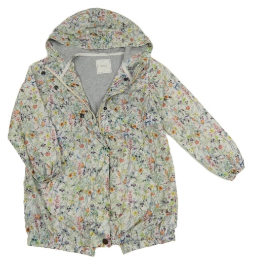 Bielo-zeleno-farebná kvetovaná šušťáková jarná bunda s kapucňou Next