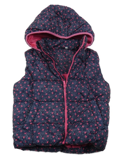 Tmavomodro-fuchsiová šušťáková zateplená vesta so srdiečkami a kapucňou C&A