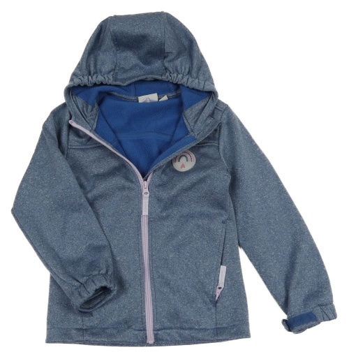 Tmavomodrá melírovaná softshellová bunda s nášivkou a kapucňou Alive