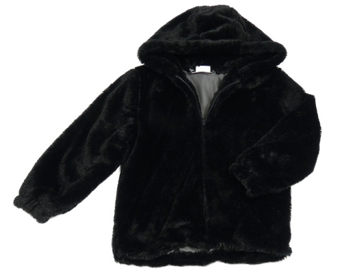 Čierna kožušinová podšitá bunda s kapucňou