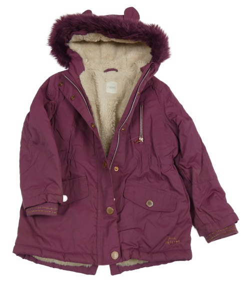 Fialová šušťáková zateplená parka s kapucňou s kožešinou Next